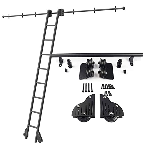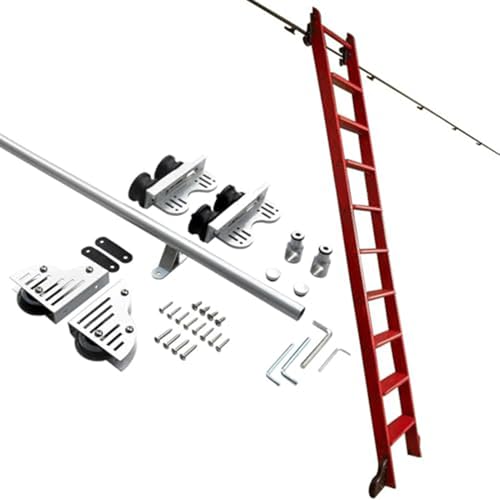 Kit de quincaillerie pour porte de grange coulissante avec rail roulant et échelle pour bibliothèque