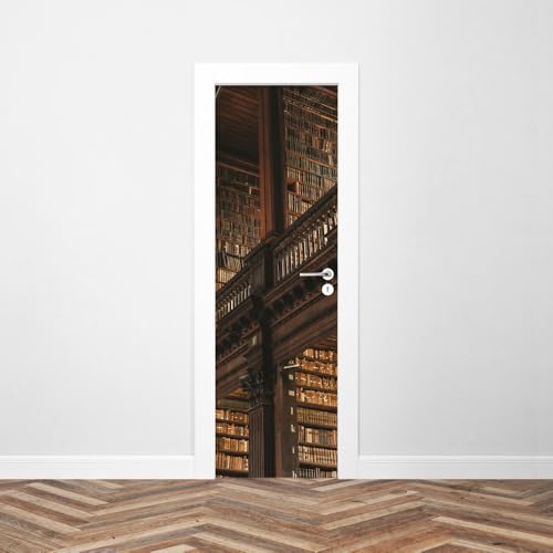 FLFK Bibliothèque rétro Autocollant Porte Affiche 3D pour Cuisine Chambre Salle de Bain Auto-adhésif Amovible Murale Décoration 77X200cm