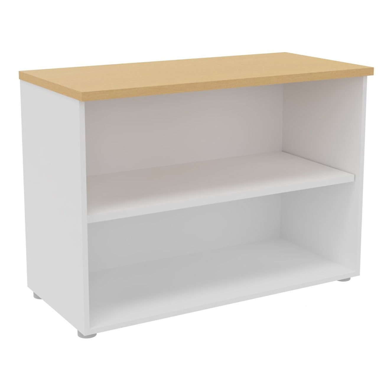 Bibliothèque basse sans porte L.100 x P.48 x H.72 cm - Corps Blanc - Top Hêtre