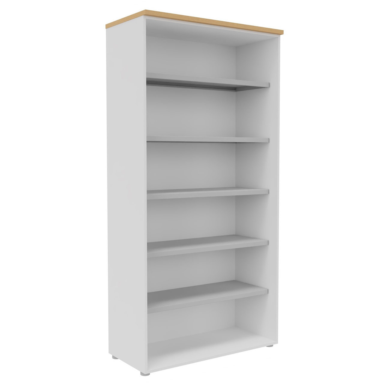 Bibliothèque haute sans porte L.80 x P.48 x H.201 cm - Corps Blanc - Top Chêne Nebraska