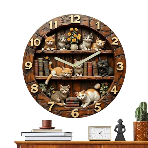 Générique Horloge Murale Chat Rétro - Art Décoratif Animal en Bois 20 cm,Horloge Murale Chat pour Bibliothèque,pour Salon, Chambre, Cuisine, Bureau, Entrée, Couloir
