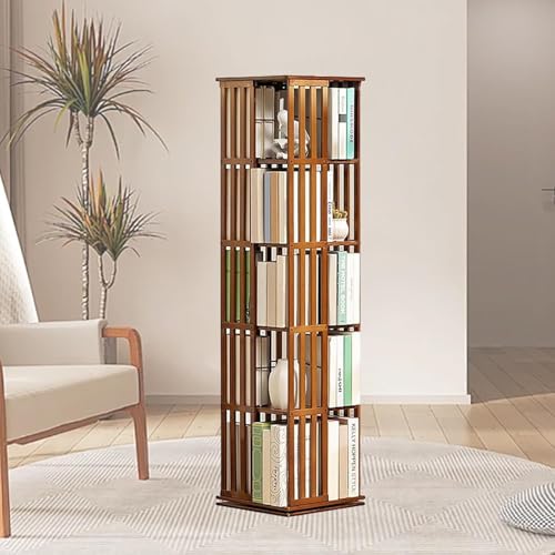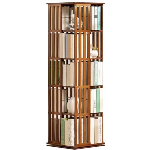 Bibliothèque Rotative 5/6 Niveaux, Bibliothèque Rotative à 360 °, Bibliothèque Tournante En Bambou à Affichage 360, Bois Massif Bibliothèque Rotative, étagères Bibliothèque Rotative,Brown-5Tier