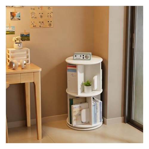 AMYSTY Étagères pour Livres Bibliothèque Bibliothèque Rotative À 360 °, en Bois, Étagère De Rangement, Livres sur Pied pour Chambre Coucher Et Salon pour Salon Chambre(White,3 Tier)