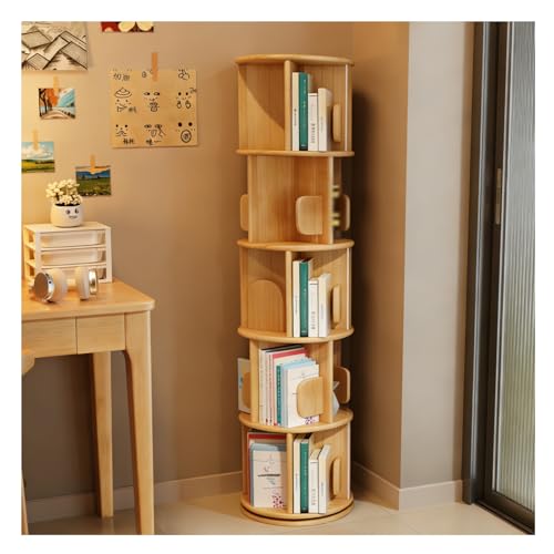 Bibliothèque Rotative en Bois Massif Bibliothèque Rotative 360 Présentoir Au Sol Support De Rangement pour Enfants Adultes Organisateur D’étagère Multifonctionnel, B, 5 Floors