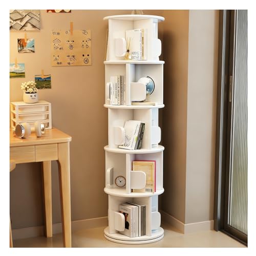 Bibliothèque Rotative à 360 Degrés,étagère de Rangement 2/3/4/5 Niveaux,Étagère de Sol étagère Colonne Meuble de Rangement avec Déflecteur pour Salon,Bureau,Blanc,5 Tier
