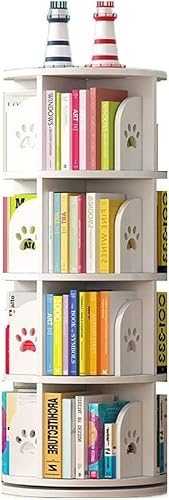 Bibliothèque Rotative à 360° Bibliothèque Bibliothèque Rotative Ronde Bibliothèque avec Motif D’Empreinte 3/4/5 Étagère avec Motif Dauphin Maison Bibliothè, White, 46 * 97cm