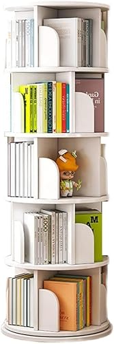 Étagère Tournante Bibliothèque Rotative à 5 étagères Multifonctionnelle Bibliothèque Rotative à 360 Degrés Étagère D’Angle Au Sol pour Chambre à Coucher Salon, White, 50 * 157cm