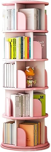 Étagère Tournante Bibliothèque Rotative à 5 étagères Multifonctionnelle Bibliothèque Rotative à 360 Degrés Étagère D’Angle Au Sol pour Chambre à Coucher Salon, Pink, 50 * 157cm