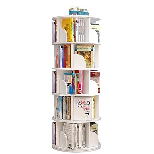 Étagère De Bibliothèque Rotative, étagère De Rangement De Bibliothèque D’Angle à 360°, Organisateur étroit pour Petit Espace, White, 5tier