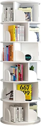 Étagère Rotative Bibliothèque Rotative à 6 Niveaux Étagère Mince Haute Étagère De Rangement De Livres Organisateur De Livres pour Salon Chambre, White, 51 * 190cm
