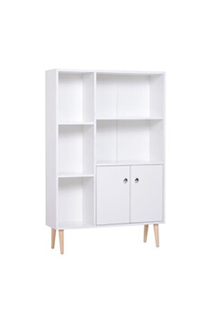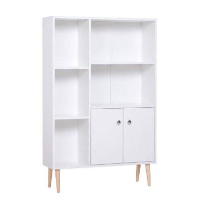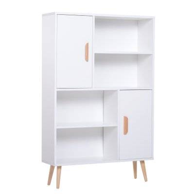 Bibliothèque scandinave 4 niches 2 placards étagère 80l x 24l x 123h cm pieds effilés inclinés blanc