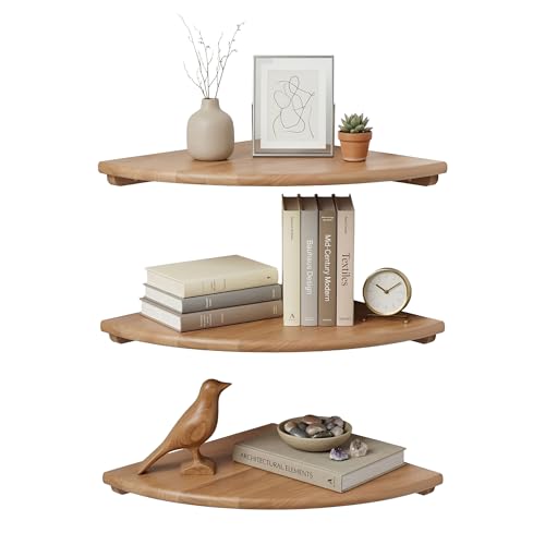 Relaxdays Étagère d'angle, H x L x P : 3 x 35 x 35 cm, Bois de Noyer, Salon, décoration, capacité de Charge : 5 kg, bibliothèque Suspendue, Naturel