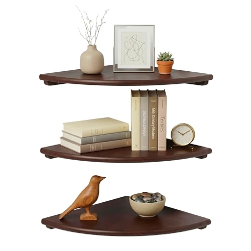 Relaxdays étagère d'angle HP:3x40x40cm Bois Noyer Salon Deco Charge 5kg bibliothèque Suspendue Marron foncé