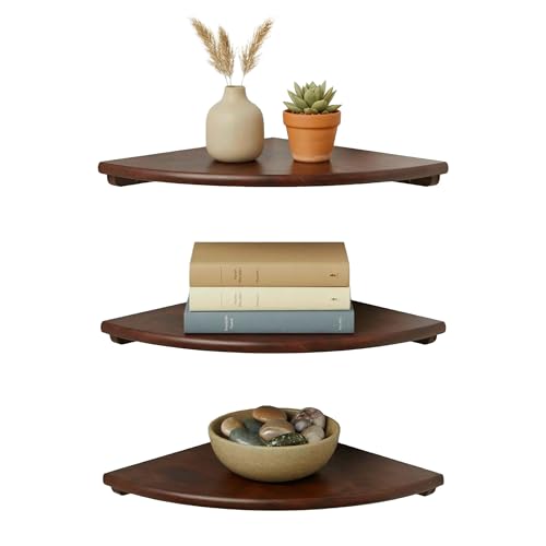 Relaxdays Étagère d'angle (H x l x P) : 3 x 18 x 18 cm, en Bois de Noyer, Salon, décoration, capacité de Charge : 5 kg, bibliothèque Suspendue, Marron foncé