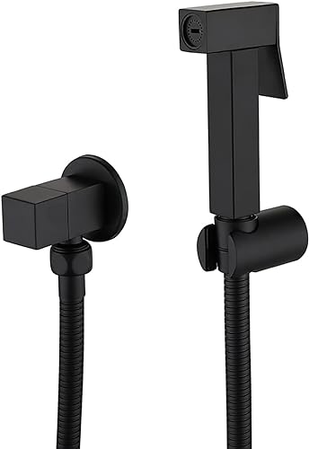 Pulvérisateur De Bidet à Main, Robinet De Bidet De Toilette en Acier Inoxydable Froid Unique Shattaf Valve Jet Set Pomme De Douche, Black