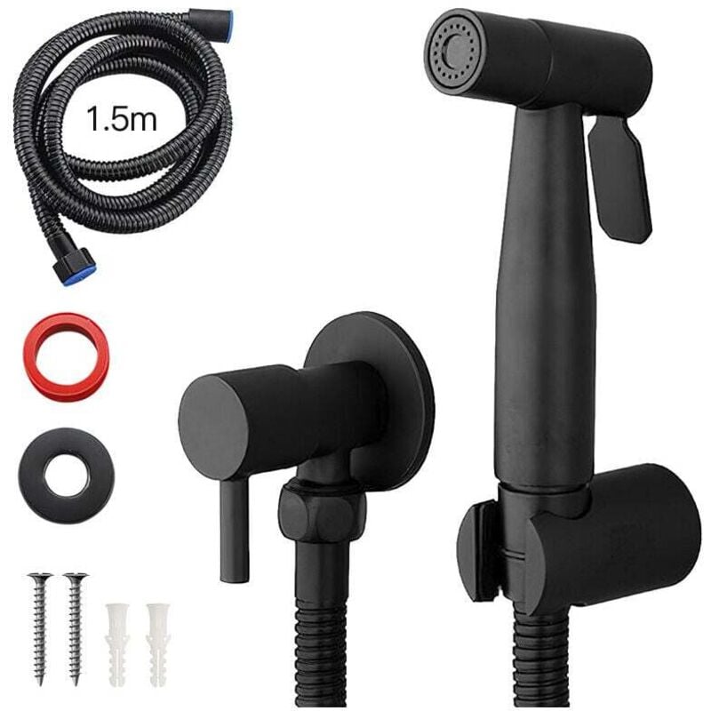 AQG - Noir Portable Bidet Pulvérisateur Toilette Robinet En Acier Inoxydable Bain Froid Shattaf Valve Pulvérisateur Ensemble