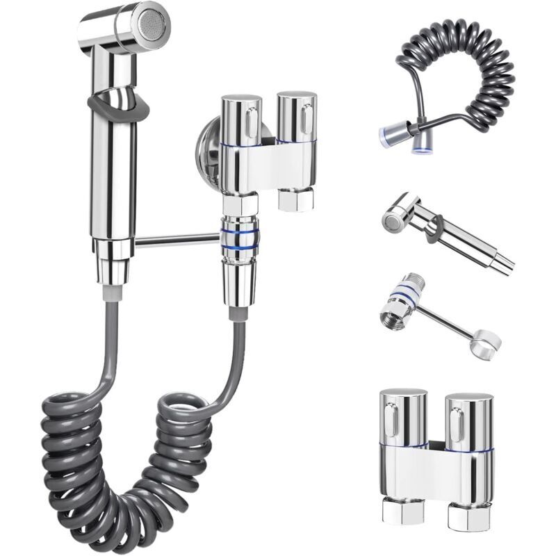 Fitags - Kit Douchette wc Mitigeur, Thermostatique Douchette à Main en lation Chrome Anti-brûlure Toilette, Bidet Spray Set Inverseur de Douche