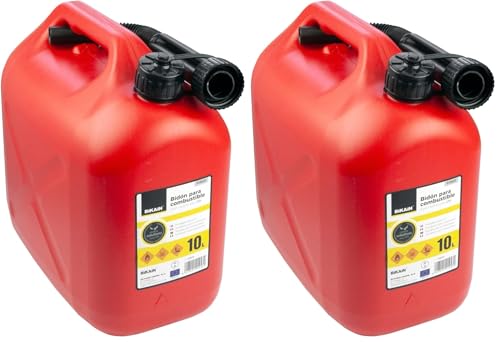 Bikain - Jerrican Essence - 10 Litres - Bidon en Polyéthylène - Norme UN Pour Transport de Matières Dangereuses - Résistant aux Additifs de Carburant - Avec Tuyau - Modèle B10ECO (Lot de 2)