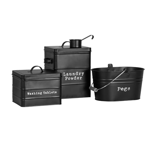 Harbour Housewares 3 x Utilitaire Métal Vintage - Salle de Stockage Bidons Style Industriel Tins - cm - Noir