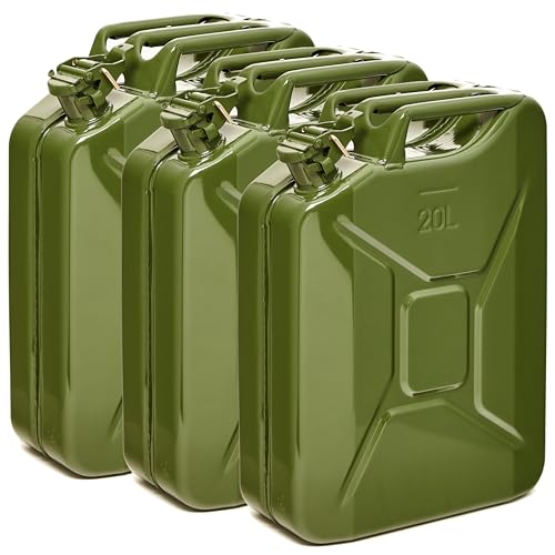 BW® Lot de 3 bidons de carburant en métal - 20 l - Vert olive - RAL 6003 - Certifié TÜV et homologation ONU - Fabriqué en Europe