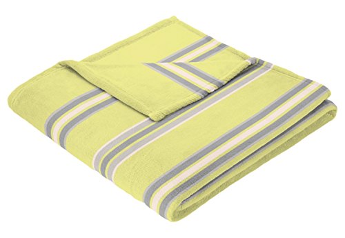 Biederlack Sunny Days Plaid réversible Bleu Clair 150 x 200 cm, Coton mélangé, Jaune Citron, 50x38x13 cm