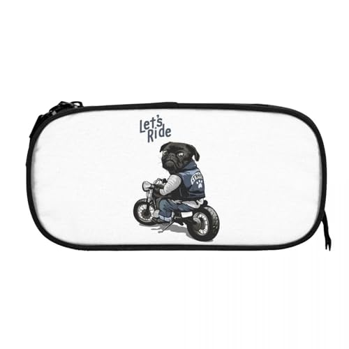 QIOEURYU Étuis à crayons Let’s Ride Moto Big Bike Black Pug Chien pour les étudiants École Boîte à stylos Sac à crayons Pochette à crayons Porte-stylo Polyester Durable