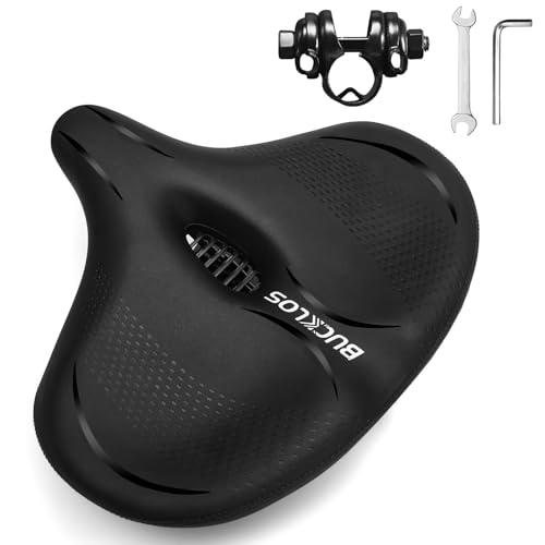 BUCKLOS Extra Wide Comfort Bike Seat Cushion for Men Women - Bicycle Big Soft Foam Padded Seats for Exercise Bike/Peloton/Ebike/Stationary Bike/Spin Bike