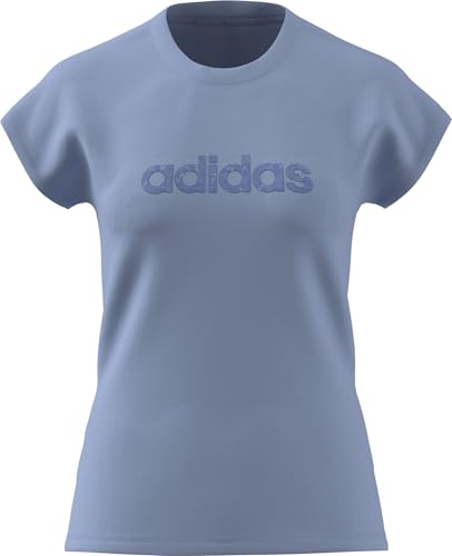 adidas Damen Essentials BIG Linear Single Jersey Tee, Glow Blue/Lucky Blue, L