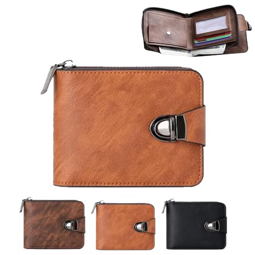 Générique Men's Vintage Compact Zipper Wallet,Vintage PU Leather Walletwith Big Money Slot, Card Slot, Id Slot, Zipper Pocket (Brown)