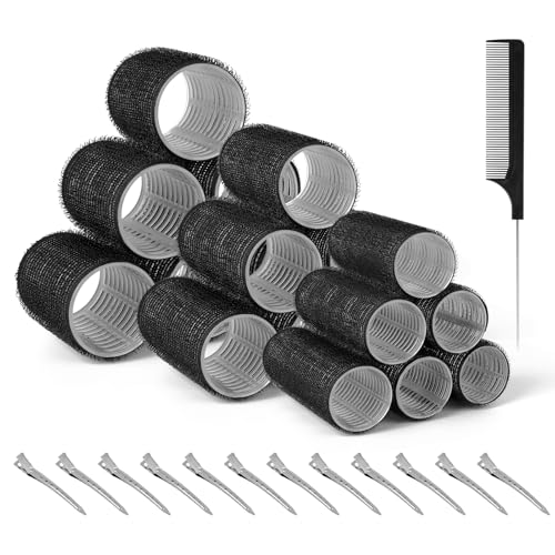 Set de 32 Bigoudis Cheveux, 18 Pièces Rouleaux Cheveux avec 12 Pièces Clips et 2 Peignes, Gros Bigoudis Cheveux pour Cheveux Longs, Moyens, Courts
