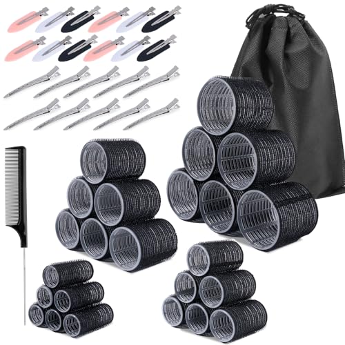 Romon 31 Pièces Bigoudis Cheveux Set, 18 Rouleaux Cheveux Chauffant Heatless Curling avec 3 Tailles 60mm 45mm 36mm avec 12 Pinces à Cheveux et 1 Peigne pour Tous Les Cheveux Courts, Moyens Ou Longs