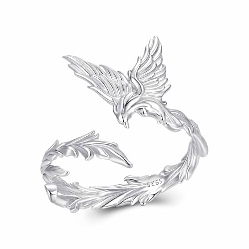 Kerraom Bague Phénix Réglables en Argent 925 Bague Phoenix Oriental Plaqué Or Blanc Ajustable Bagues Ouverte Mythologique Bijoux Femme Fille Cadeau