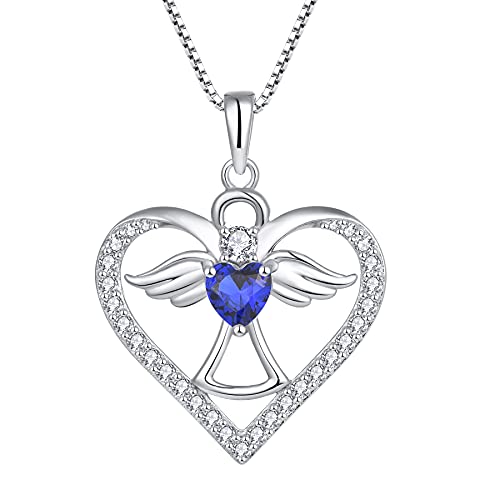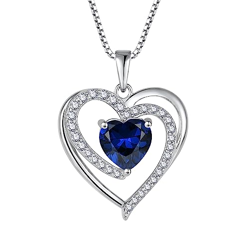 YL Boucles d'oreilles Cœur Argent 925 taillé Septembre Pierres de Naissance Saphir Bijoux pour Femme