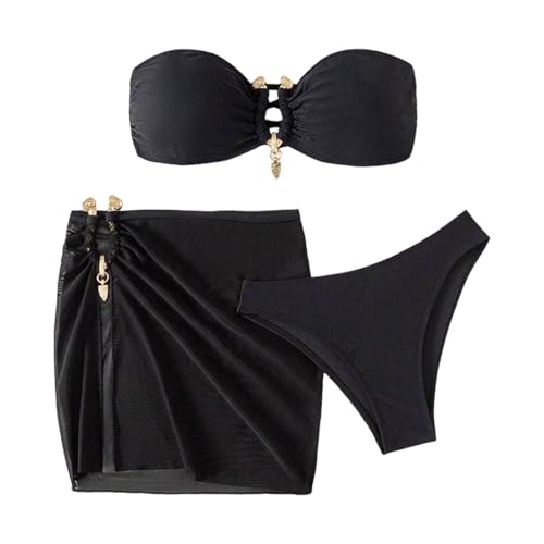 éTé Bikini,Ensemble Bikini Bandeau à Volants pour Femme, Haut Triangle, Bas Taille Haute, Maillot de Bain Deux pièces, Tankini avec détails en Anneau, Monokini, vêtements de Plage (Black, M)