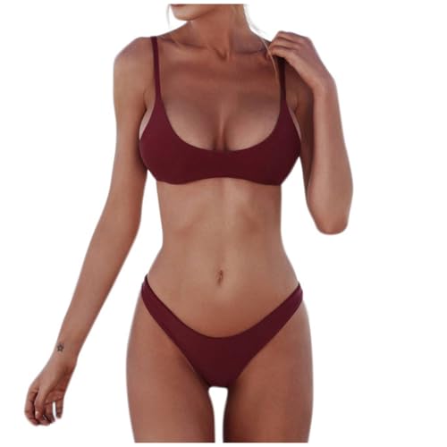 Générique Maillot De Bain Deux Pièce pour Femme - Femmes Push Up rembourré Soutien-Gorge Bandeau Bikini Maillot de Bain Maillots de Bain Bain (Red XL)
