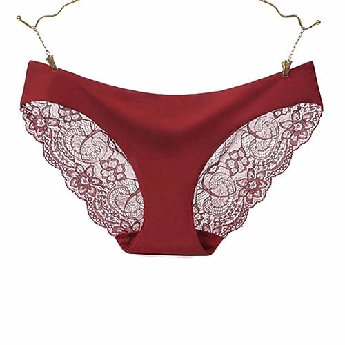 SHTGOI Lot de 2 sous-vêtements pour femme - En dentelle - Sans couture - Culottes sexy - En soie glacée - Respirantes - String - Bikini - Sans coutures - Taille basse - L - Bordeaux