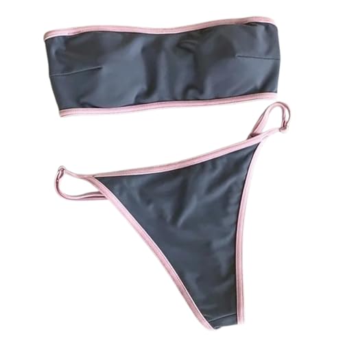 Viunychn Bikinis pour femme sexy, bikini femme ensemble mini taille haute string dos nu maillot de bain bustier string push up sportif ventre chemin maillot de bain deux pièces