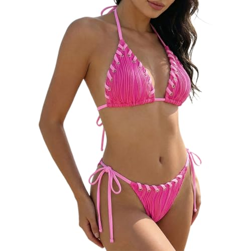 Viunychn Bikinis pour femme sexy, bikini pour femme Mini Curvy Sexy Tanga Maillots de bain à lacets Push Up extrêmement décontracté Maillot de bain deux pièces