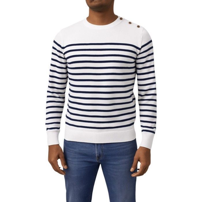 Bill Tornade Pull marinière col rond Mariniere Blanc Homme