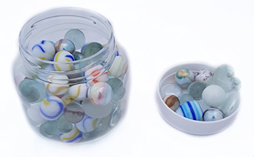 MaRécréation - Bocal de Billes en Verre variétés de Blanc : Billes et Mini Billes, Billes Plates et Billes Formes, calots et Mini calots