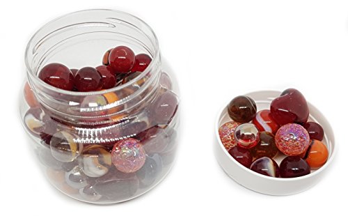MaRécréation - Bocal de Billes en Verre variétés Rouge & Orange : Billes et Mini Billes, Billes Plates et Billes Formes, calots et Mini calots