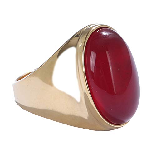 HIJONES Acier Inoxydable pour Homme Gros Ovale Vert Clair Oeil de Chat Pierre Bague Argent Taille 60