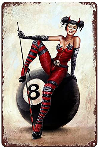 Vintage Metal Signs - Black Eight Billiard Ball Tin Sign Beauty Pinup Girl Poster Wall Art Decor for Home Bar Club Cafe Garage Man Cave 8x12 inch