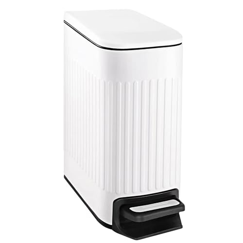 TIPGO Slim Bathroom Trash Can with Lid Soft Close, Step Pedal, 6 Liter / 1.6 Gallon Stainless Steel Trash Bin, Small Garbage Cans for Bedroom, Office, Kitchen (White)