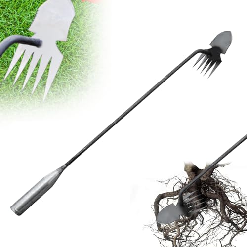 Desherbeur Manuel Acier Inoxydable Arrache Mauvaise Herbe Râteau de Désherbage Outils Jardinage Binette Outil D'arrache-Mauvaises Herbes Avec Long Manche Convient aux Pelouses et Aux Jardins (50cm)