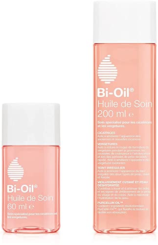 Bi-Oil Huile De Soin Naturelle - Soin Spécialisé Pour Les Vergetures, Cicatrices, Peau Sèche Et Teint Irrégulier - Formulation 100% Naturelle - Idéal Pendant La Grossesse - 1 X 60 Ml