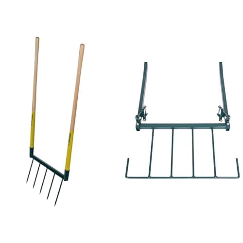 Leborgne, Duo 1 Émietteur + Biogrif NaturOvert, Grelinette Non Assemblée, 5 Dents Interchangeables, Boîte Carton, Double Manche Long en Bois PEFC 100%, Outillage de Jardinage, Fabrication Française