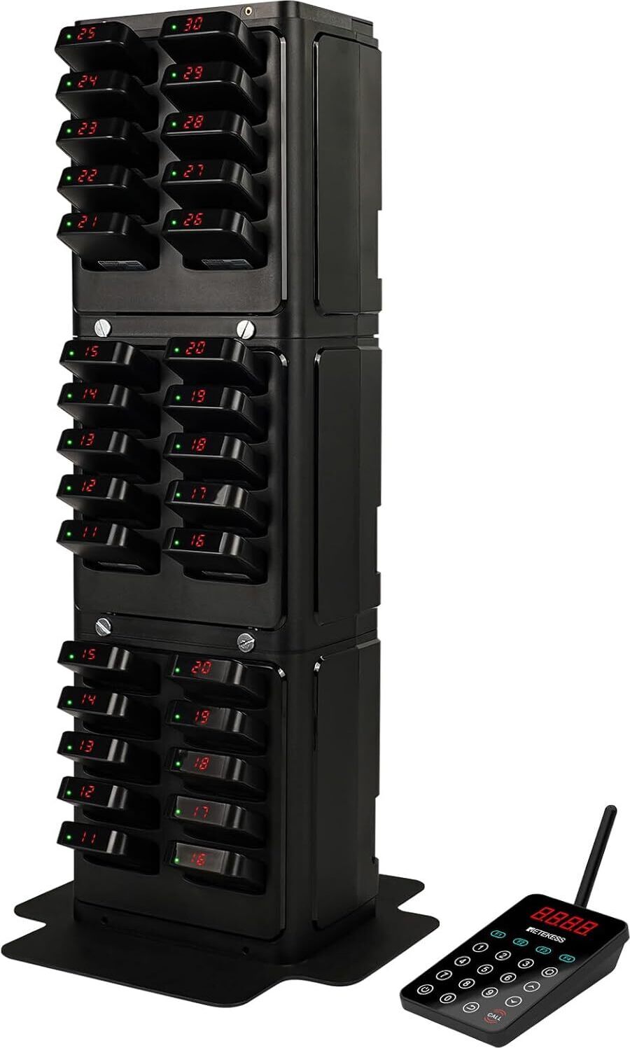 ASHATA Système d'attente sans Fil de Retaurant, 30 récepteurs Rechargeables + 1 émetteur de Charge Bipeur d'appel Convient pour Restaurant ou Bar etc(EU)