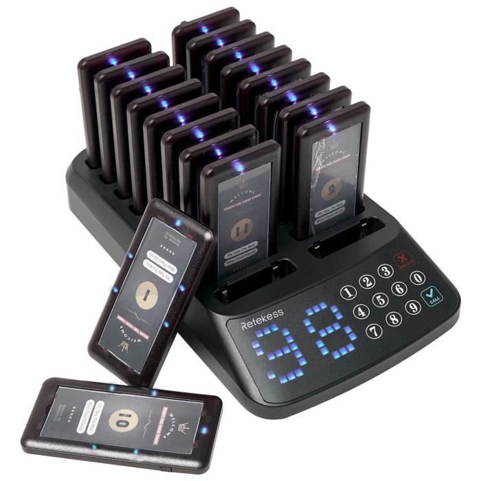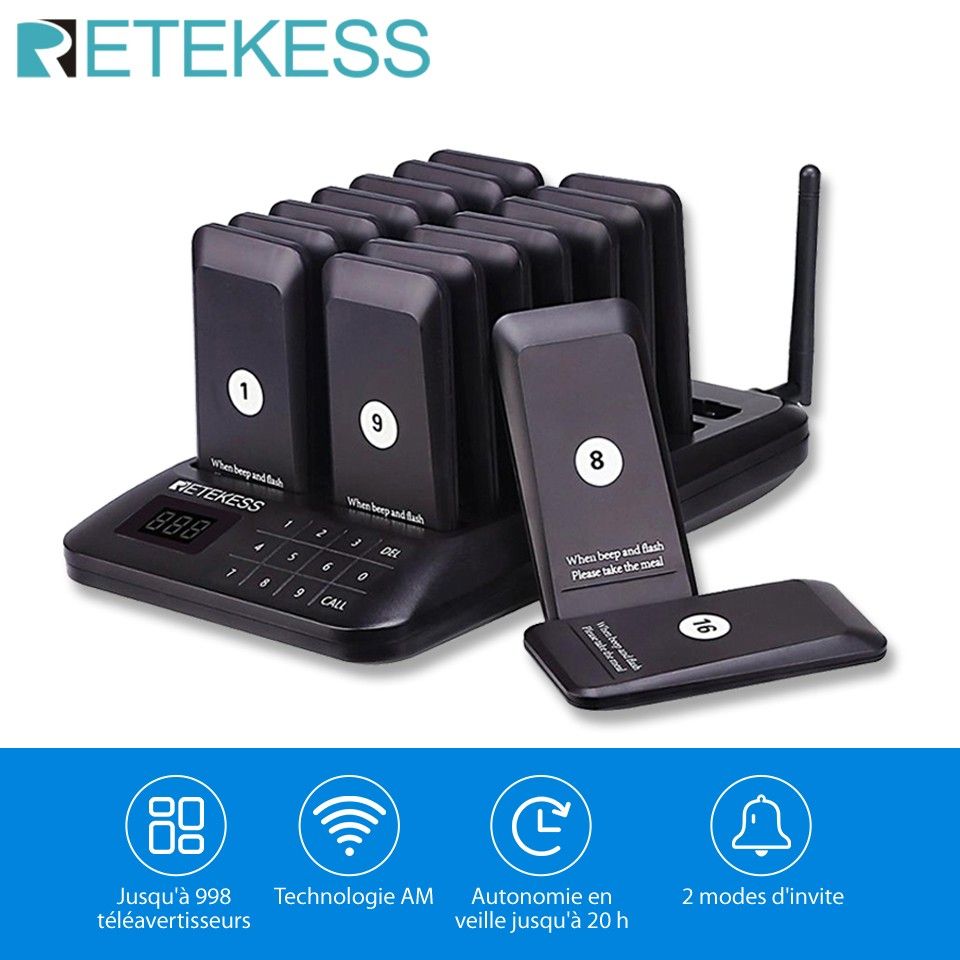 Retekess TD157 Pager Système sans Fil 500M 20H de Travail Système d’Appel sans Fil pour Restaurant Clinique Hôtel (16 Bipeur)