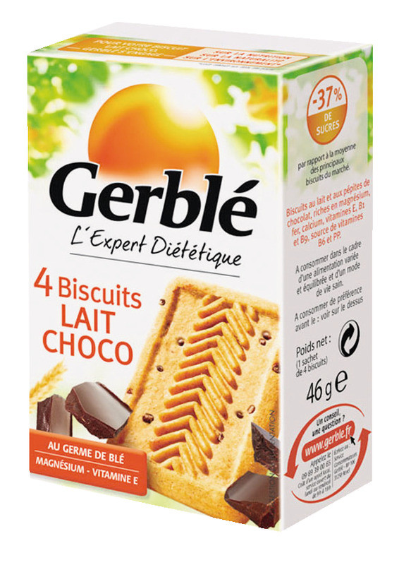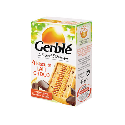 Gerble Biscuits diététiques Lait chocolat Gerblè - Lot de 18 boîtes 4 biscuits 46 g
